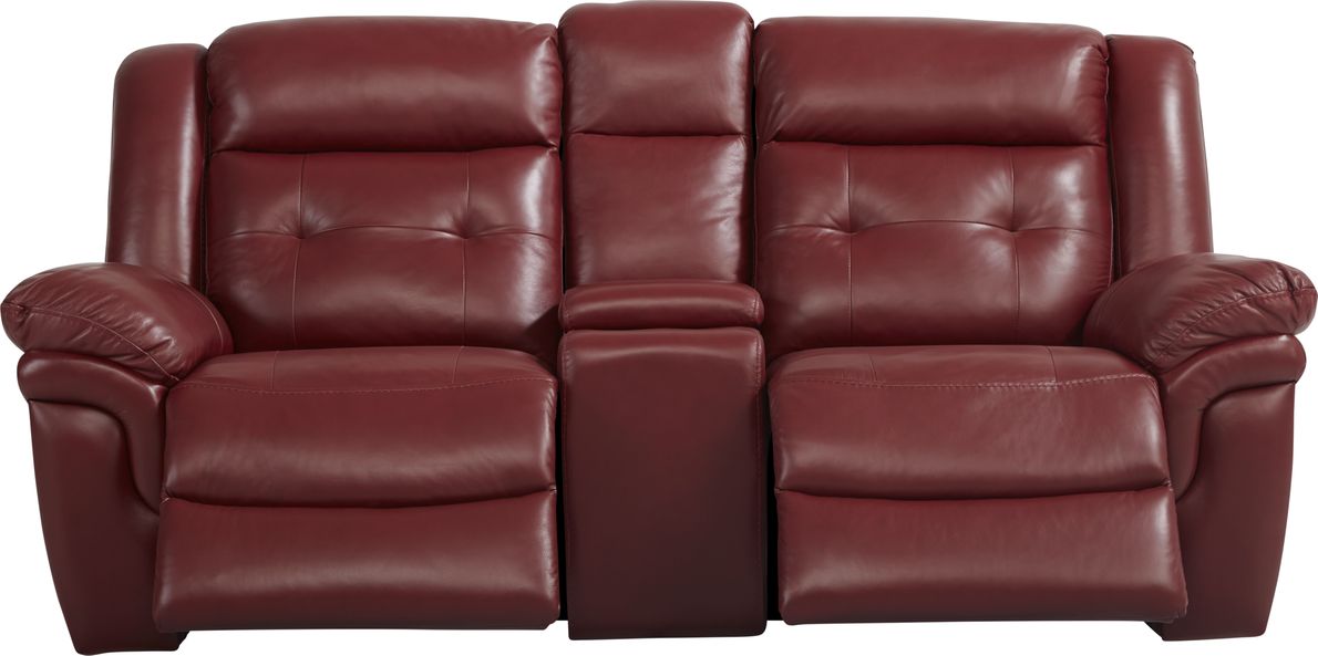 Ventoso Red Leather Reclining Console Loveseat