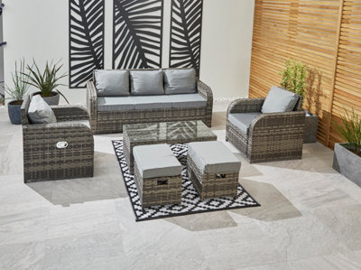 YAKOE VANCOUVER 7 SEATER RATTAN GARDEN SOFA SET IN GREY WITH
