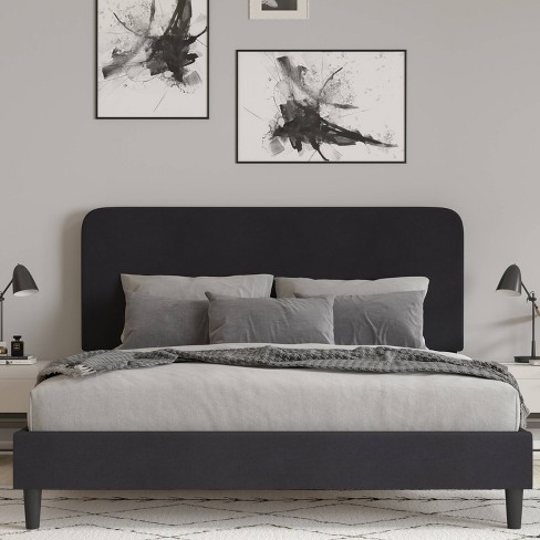 King Platform Bed With Headboard And Fabric Upholstered Frame 14