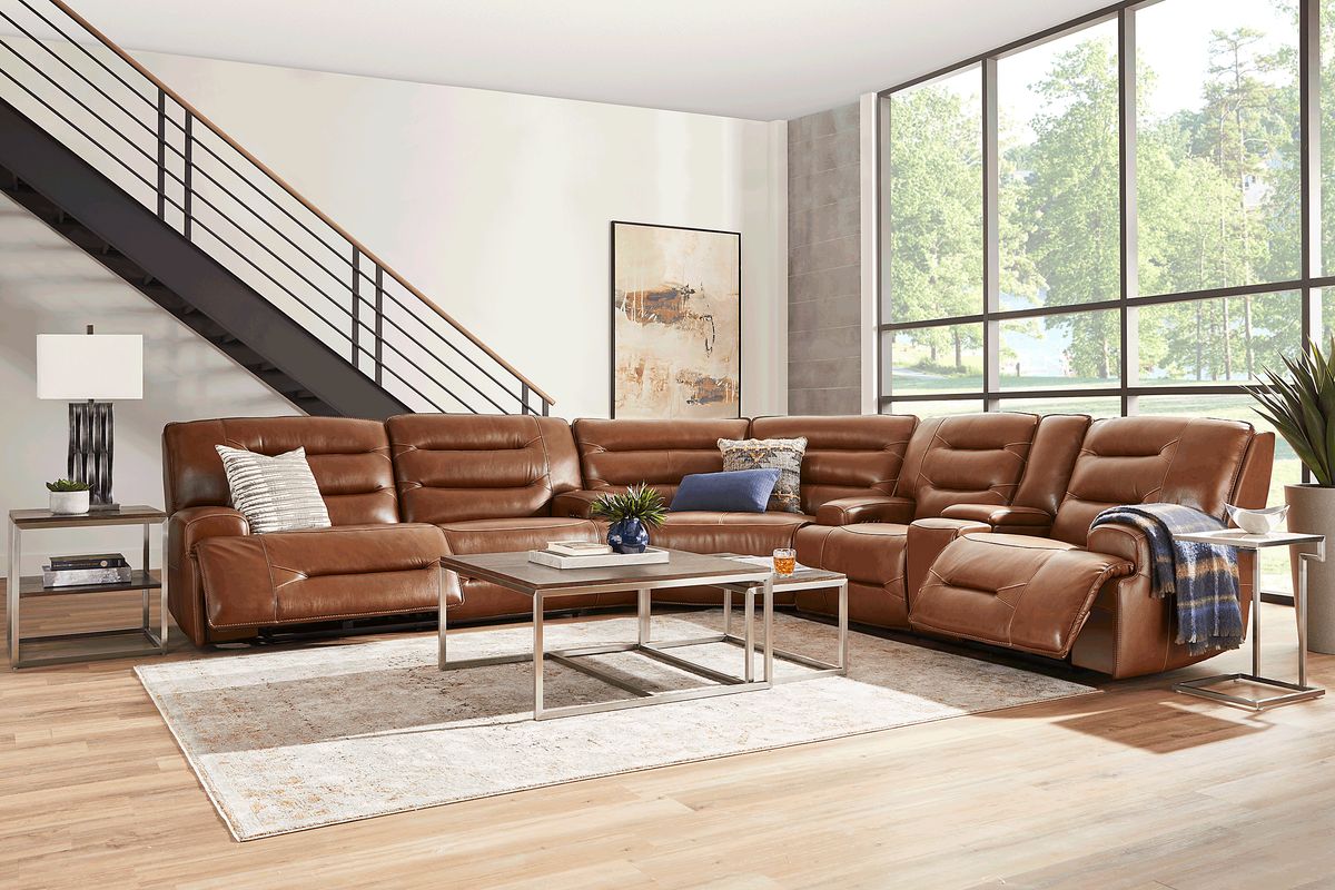 - caramel leather reclining sectional