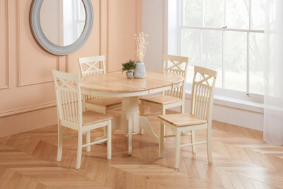 Birlea Chatsworth Round Extending Dining Table With 4 Chairs in Cream