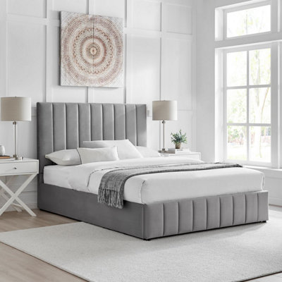 Howden Grey Velvet Kingsize Ottoman Bed Frame