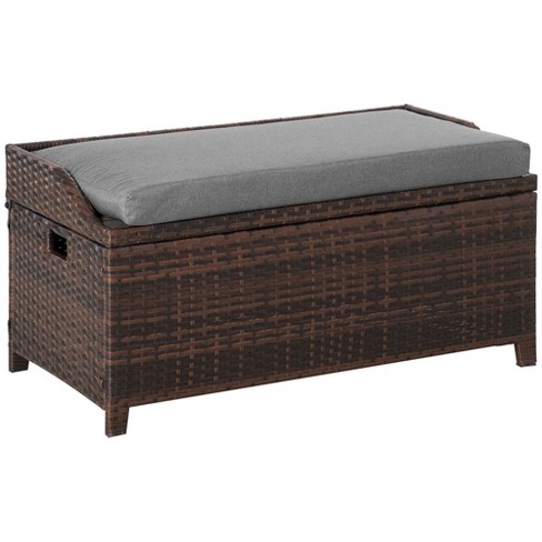 Outsunny Outdoor Wicker Storage Bench Deck Box Pe Rattan Patio