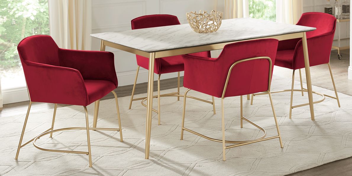 Venetian Court Gold 5 Pc Dining Room with Red Chairs