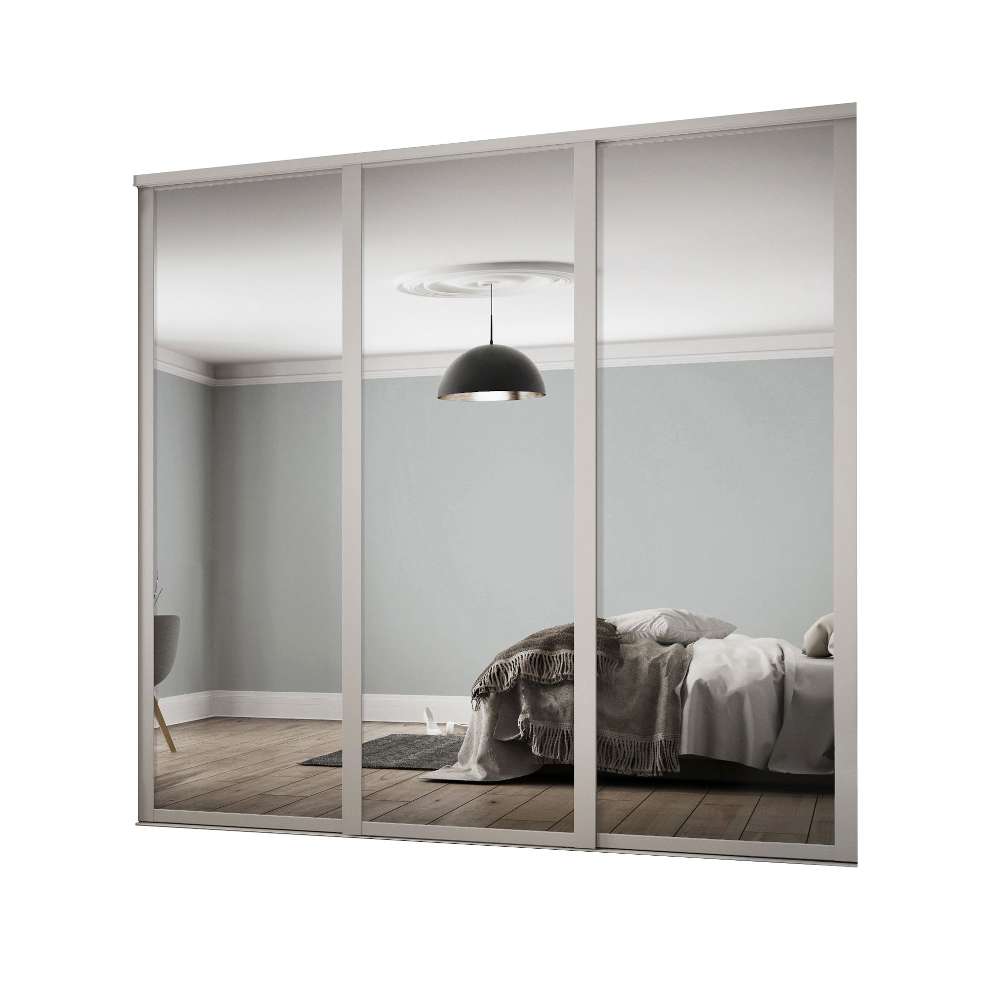 Contemporary Shaker Mirrored Dove grey 3 door Sliding Wardrobe Door kit H 2260mm W 2136mm