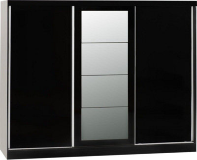 Nevada 3 Door Sliding Wardrobe in Black Gloss Finish
