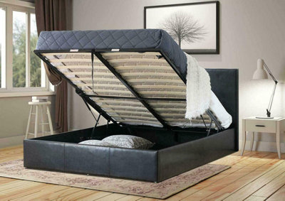 Black Leather King Size Ottoman Bed Frame With Headboard For