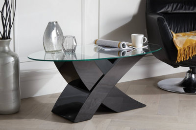 Milano Modern Clear Glass Oval Coffee Table with Sturdy Black High
