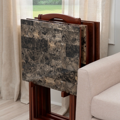 Faux Marble TV Tray 4 Piece Set