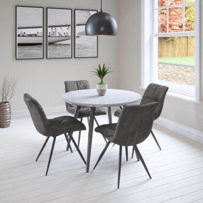 Lancaster Round Dining Table Set with 4 Amber Chairs in Dark Grey