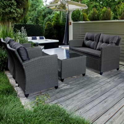 Luxury Charcoal Rattan Set 4 Piece Garden Sofa Set DIY at B Q