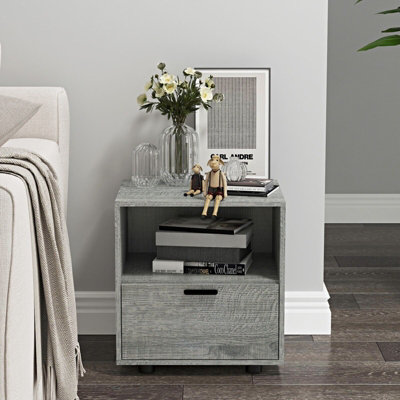 URBNLIVING Height 43cm 1 Drawer Wooden Bedside Table Ash Grey Set