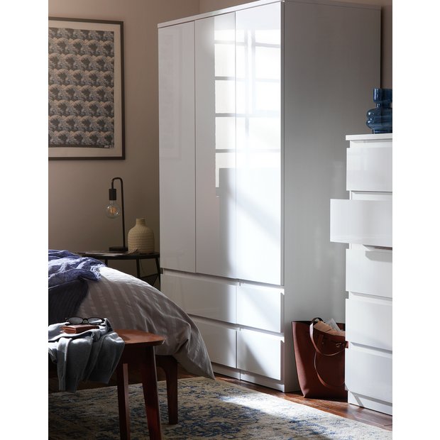 Buy Habitat Jenson Gloss 3 Door 4 Drawer Wardrobe White