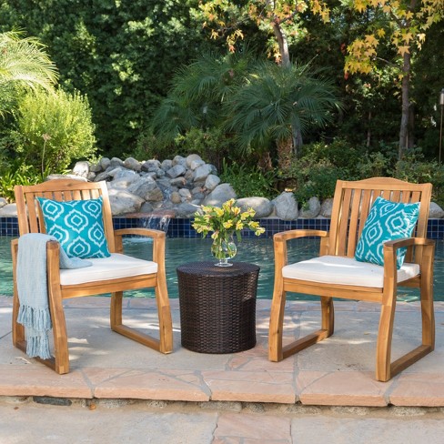 Tampa 3pc Acacia Wood Wicker Patio Chat Set Brown