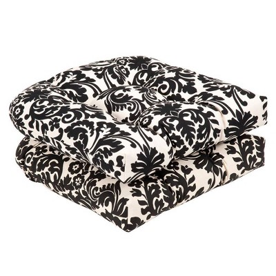 Outdoor 2 piece Chair Cushion Set Black white Floral Pillow
