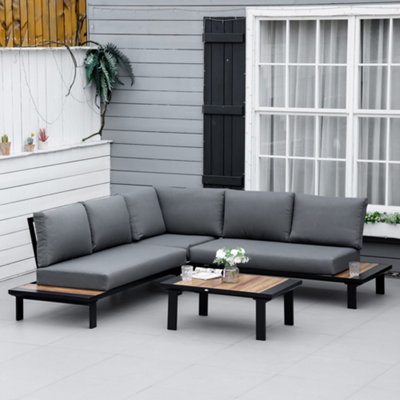 Outdoor corner loveseat 2025, Outsunny 4 PCS Garden Furniture Conversation Set with Loveseat Table Grey 2025