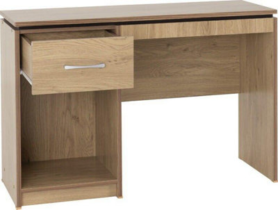 Charles Computer Desk in Oak Effect Veneer with Walnut Trim