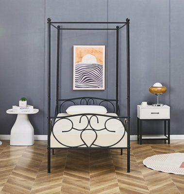 Lila Metal Four Poster Princess Bed Frame Black Single DIY at B Q