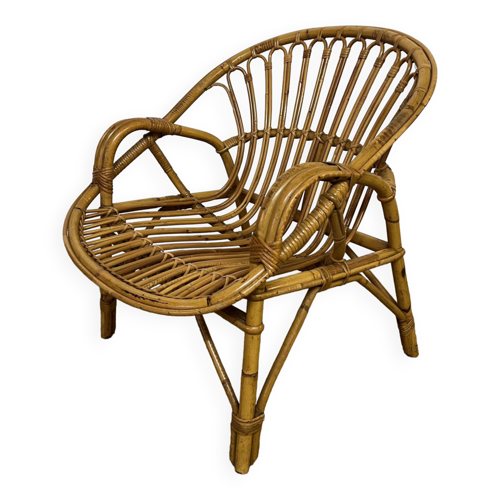 Rattan and bamboo basket armchair 1960
