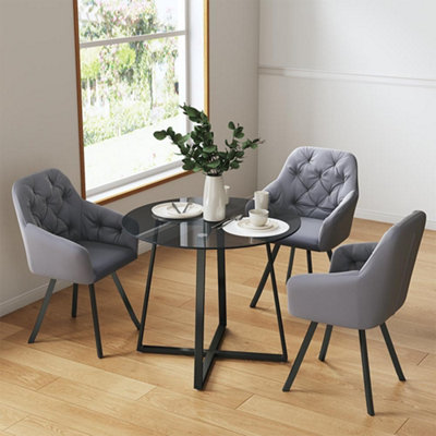 Livingandhome Modern Round Dining Table with Glass Top Dia 900 mm