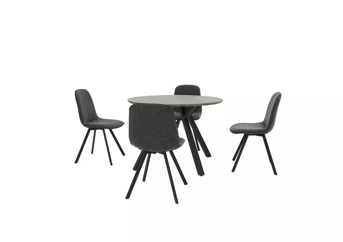 Diego Round Dining Table and 4 Faux Leather Dining Chairs