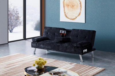 Comfy Living Crushed Velvet Bluetooth Sofa Bed in Black DIY at B Q
