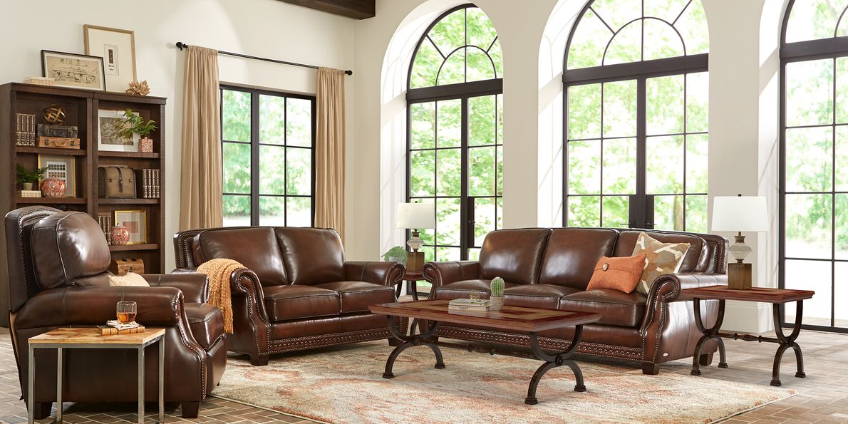 Cindy Crawford Home Calvano Brown Leather 3 Pc Living Room