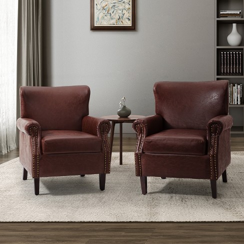Target leather armchair 2025, Set Of 2 Enzo Comfy Vegan Leather Armchair With Rolled Arms 2025