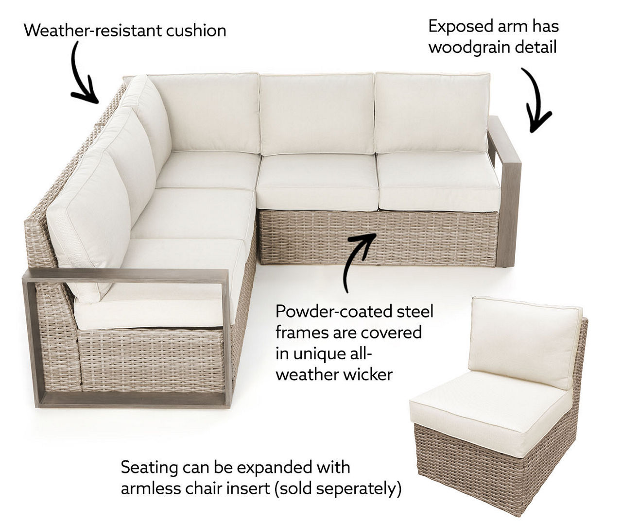 Broyhill Crestfield All Weather Wicker Cushioned Patio Sectional