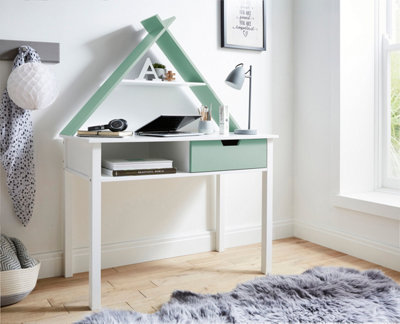 White Green Children s Kids Tipi Design Desk with Shelf and