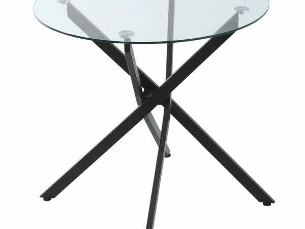 - round glass table with black legs