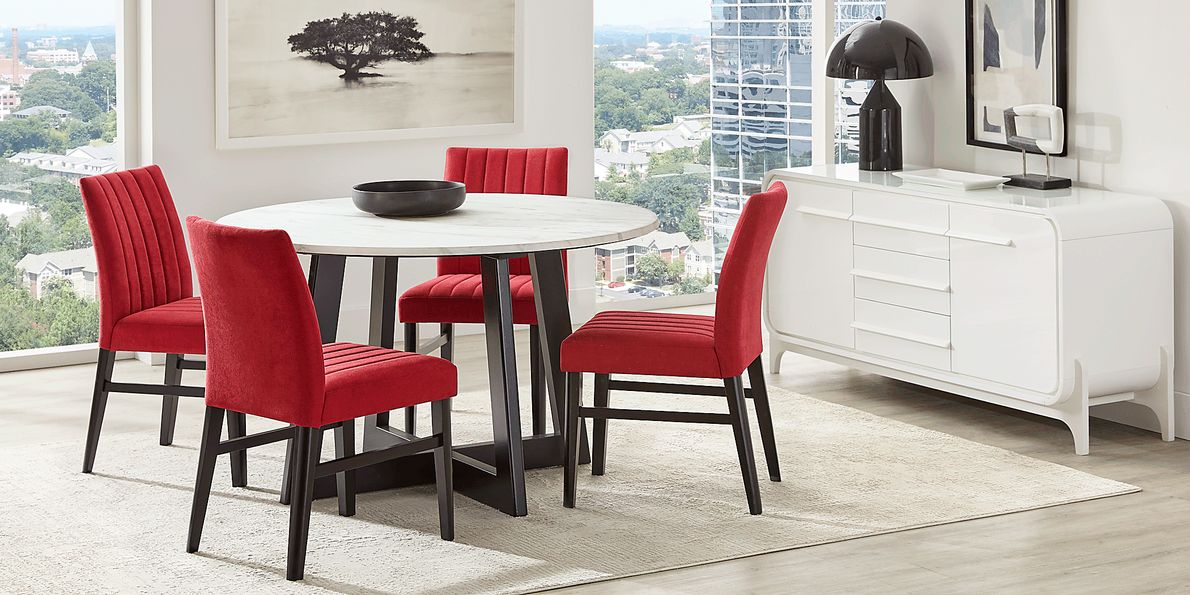 Round red chair 2025, Jarvis 5 Pc White Colors White Red Polyester Fabric Dining Room 2025