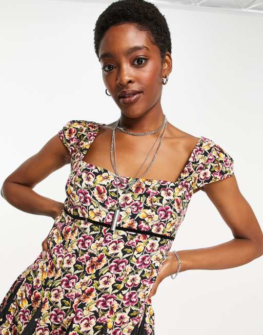 Free People Ponderosa floral printed mini dress in black ASOS