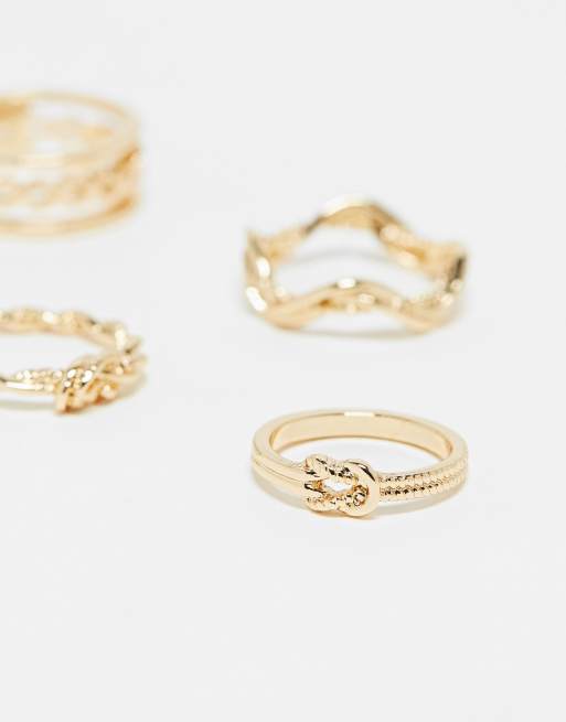Asos nike ring 2025, ASOS DESIGN pack of 4 rings with knot design in gold tone 2025
