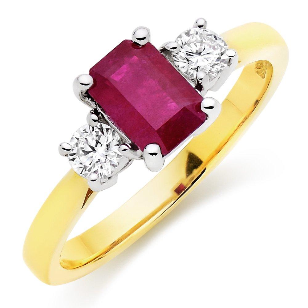 18ct Gold Diamond and Ruby Three Stone Ring 0000062