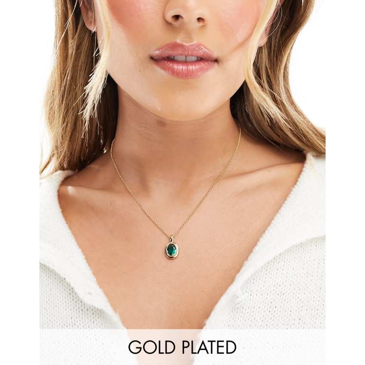 Gold necklace with emerald stone 2025, Seol Gold 18ct gold vermeil emerald stone pendant necklace 2025