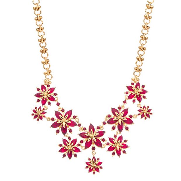 Poinsettia necklace 2025, Napier Gold Tone Poinsettia Statement Necklace 2025