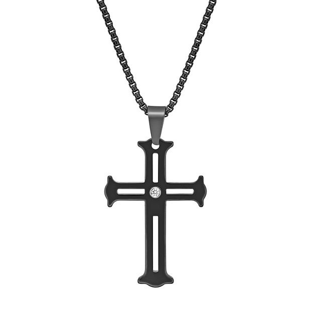 LYNX Men s Black Ion Plated Tungsten Cross Pendant with Cubic
