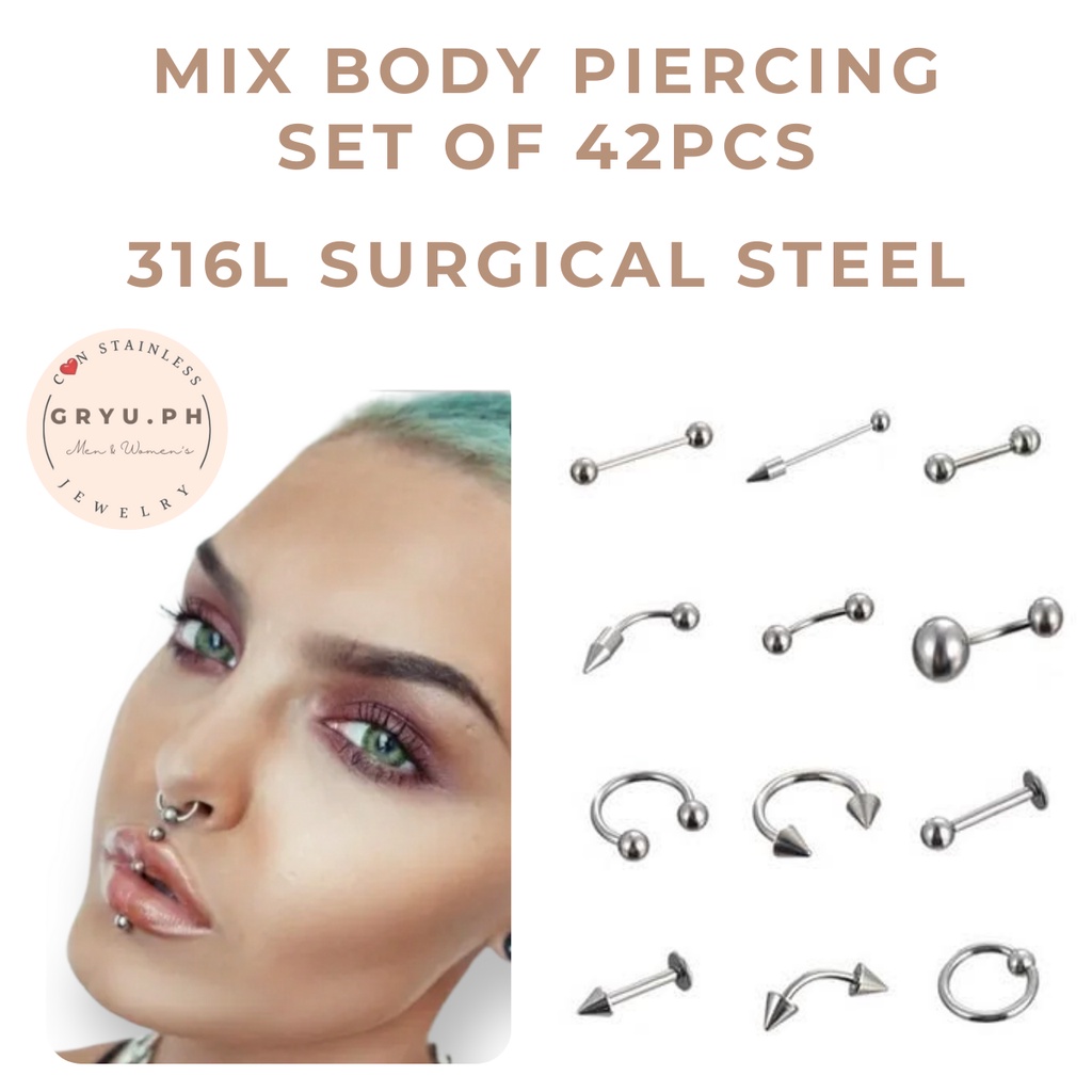 Gryu.ph 42pcs 316L SURGICAL STEEL MIX SIZES BARBELL DUMBBELL BODY PIERCING SET Hypo Allergenic