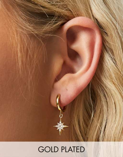 Orelia huggie hoop earrings in gold plate with starbust charm