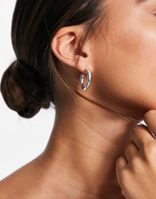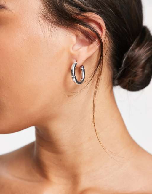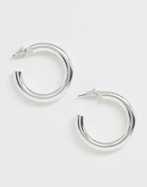 Weekday thick hoop earrings 2025, ASOS DESIGN hoop earrings in sleek hollow tube design in silver ASOS 2025
