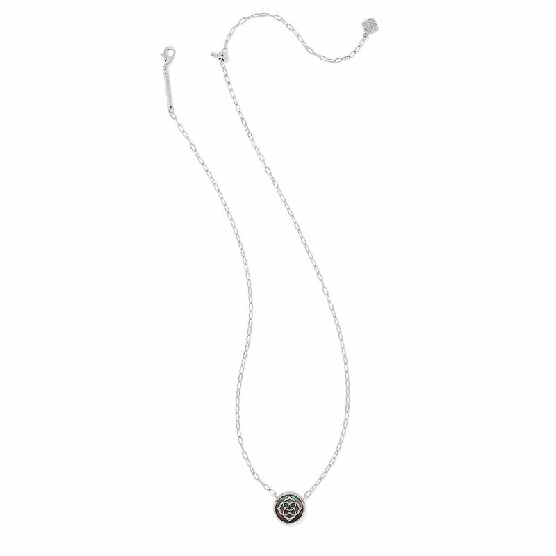 Kendra Scott Elisa Pendant Necklace in Black Mother of Pearl Bright Silver Tone