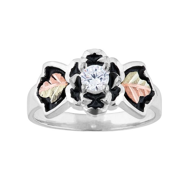 Black Hills Gold Tri Tone Cubic Zirconia Flower Ring in Sterling