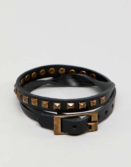 ASOS DESIGN double wrap leather bracelet with studs