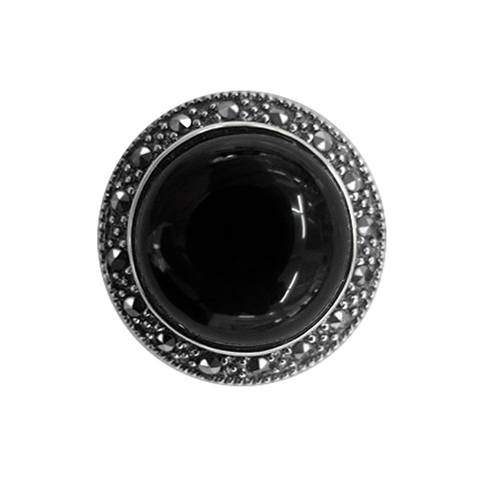 MARC Sterling Silver Swarovski Marcasite Black Onyx Ring