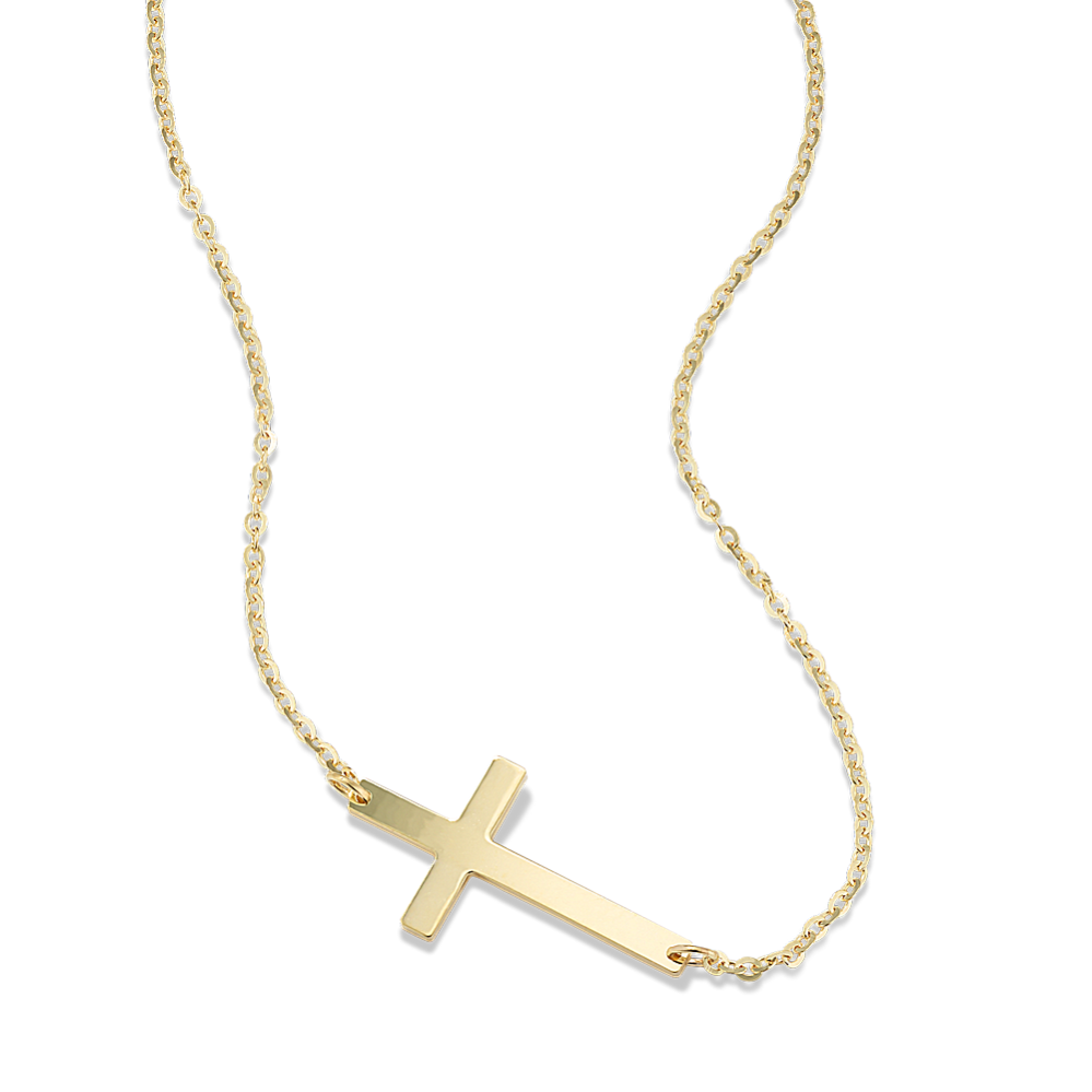 Sideways Cross Necklace in 14k Yellow Gold 18 in Shane Co