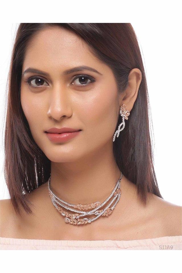 Buy VOYLLA Womens Cubic Zirconia Choker Necklace Set Shoppers Stop