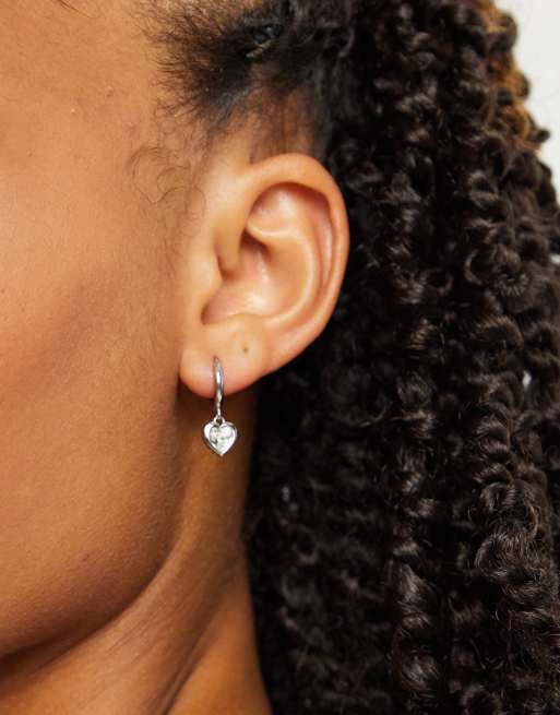 Ted Baker Hanniy crystal heart huggie hoop earrings in silver