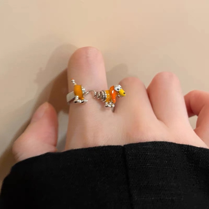 Slinky Dog Ring Female Niche Design Adjustable Unisex Alloy Electroplating Open Cartoon Spring Rings Personality Jewelry