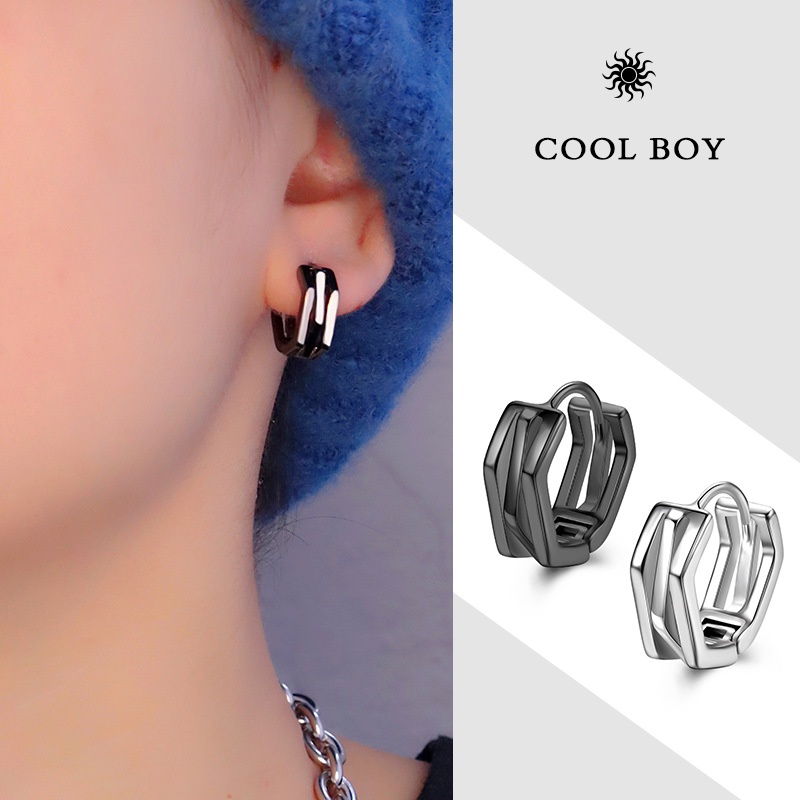 Sterl Sterling Silver Earrings Men Japanese Korean Trendy